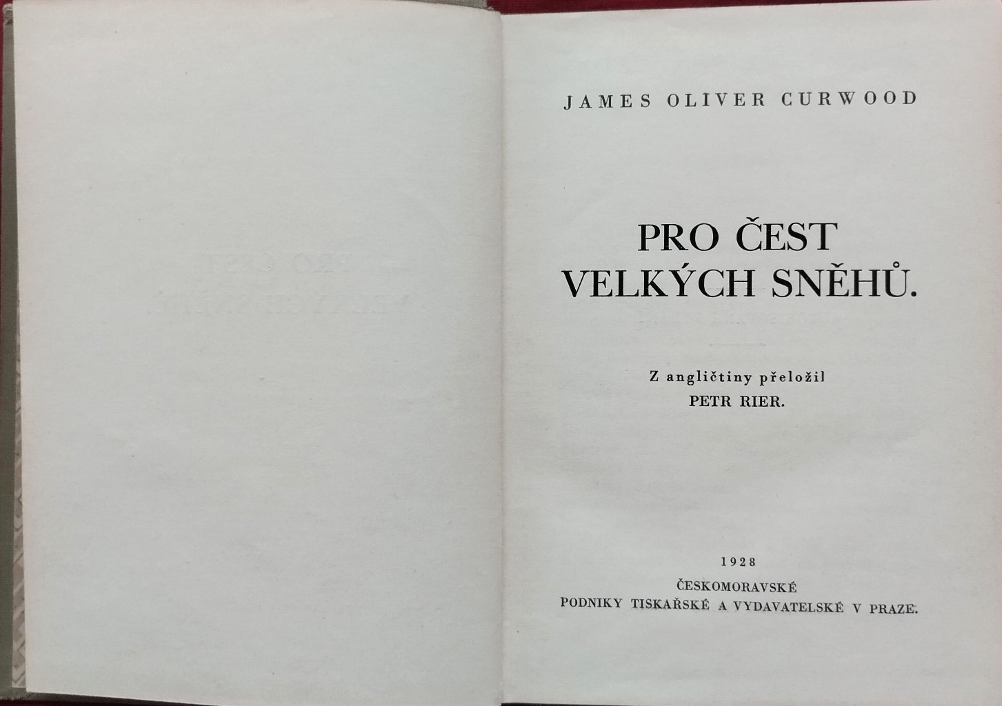 Kniha Pro čest velkých sněhů od autora Jamese Olivera Curwooda je dobrodružný román z prostředí ledového severu. Konkrétně se jedná o starší vydání z roku 1928, vydané nakladatelstvím Českomoravské podniky tiskařské a vydavatelské v Praze. Počet stran: 288, rozměr: 18 x 13,5 cm. Stav viz foto.