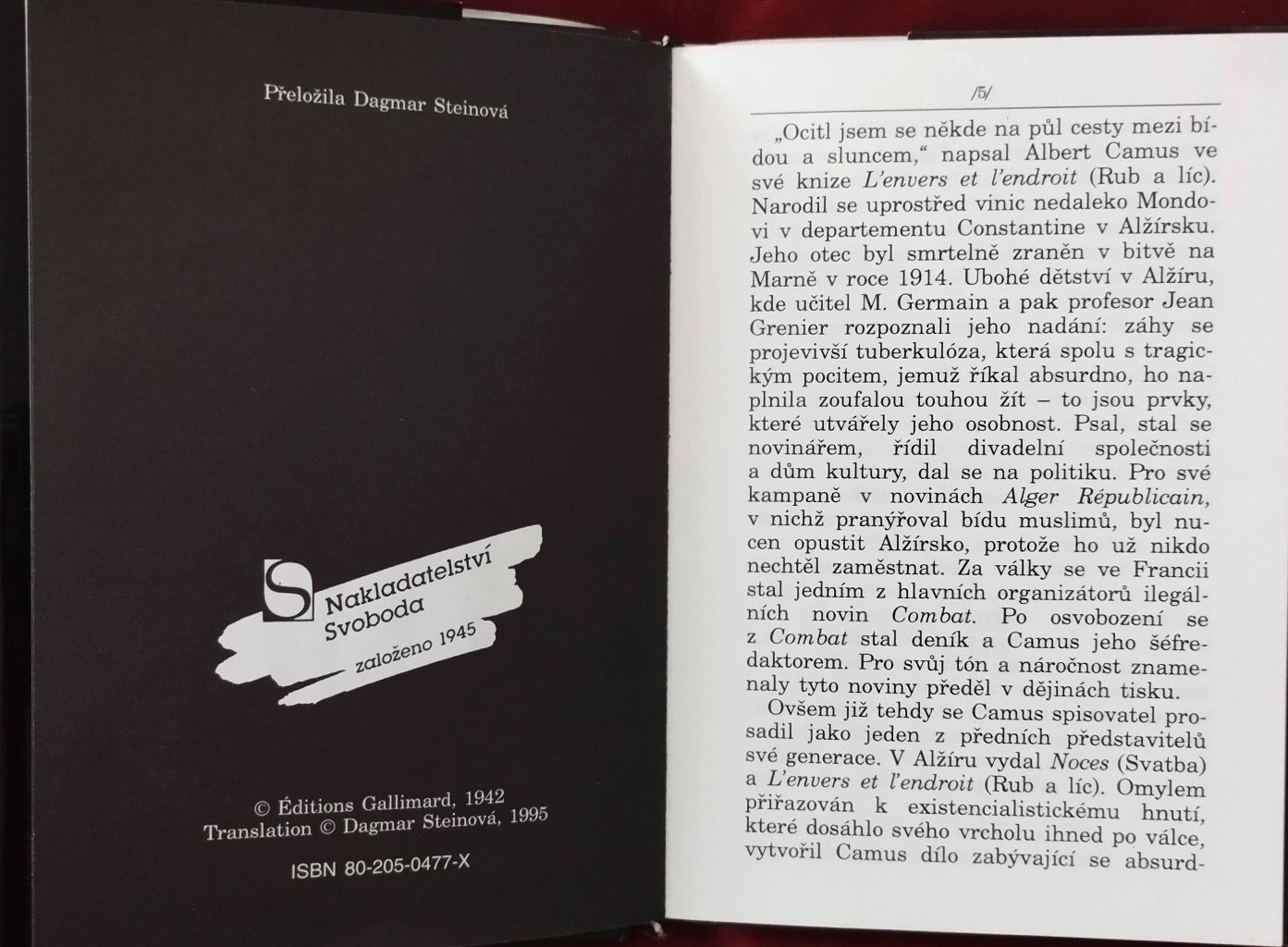 Kniha Mýtus o Sisyfovi od francouzského filozofa Alberta Camuse je zásadním textem existencialismu a absurdismu. Vydalo: nakladatelství Svoboda, Praha 1995. Počet stran: 186, rozměr: 17,5 x 12 cm.
