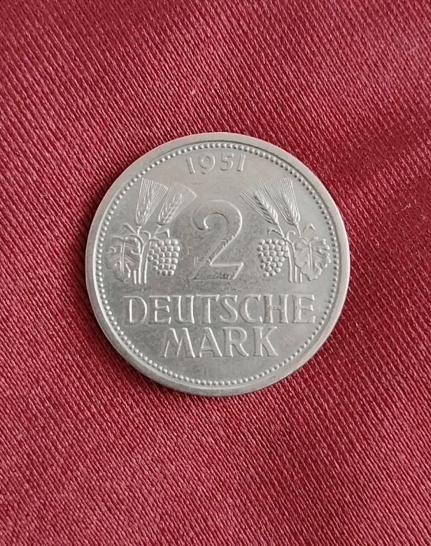 Mince z roku 1951 z období Německé spolkové republiky. Materiál: nikl