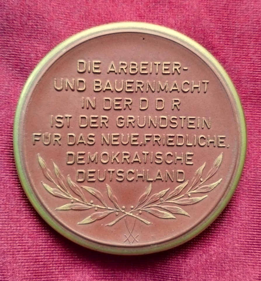Keramická medaile připomínající 10. výročí založení spotřebních družstev (Konsumgenossenschaften) ve východním Německu. Datum 18. 11. 1955.