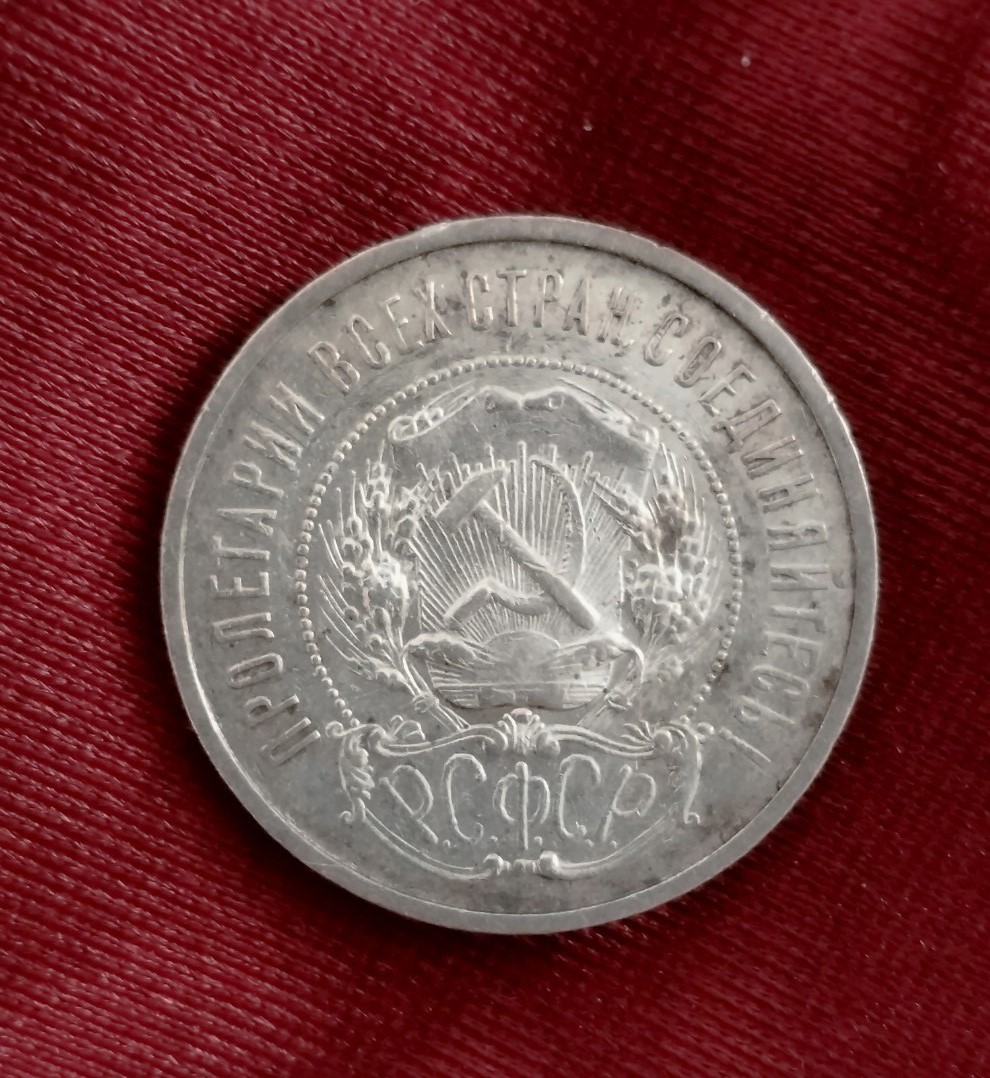Stříbrná mince o hodnotě 50 kopějek z roku 1922, kterou vydala Ruská sovětská federativní socialistická republika.