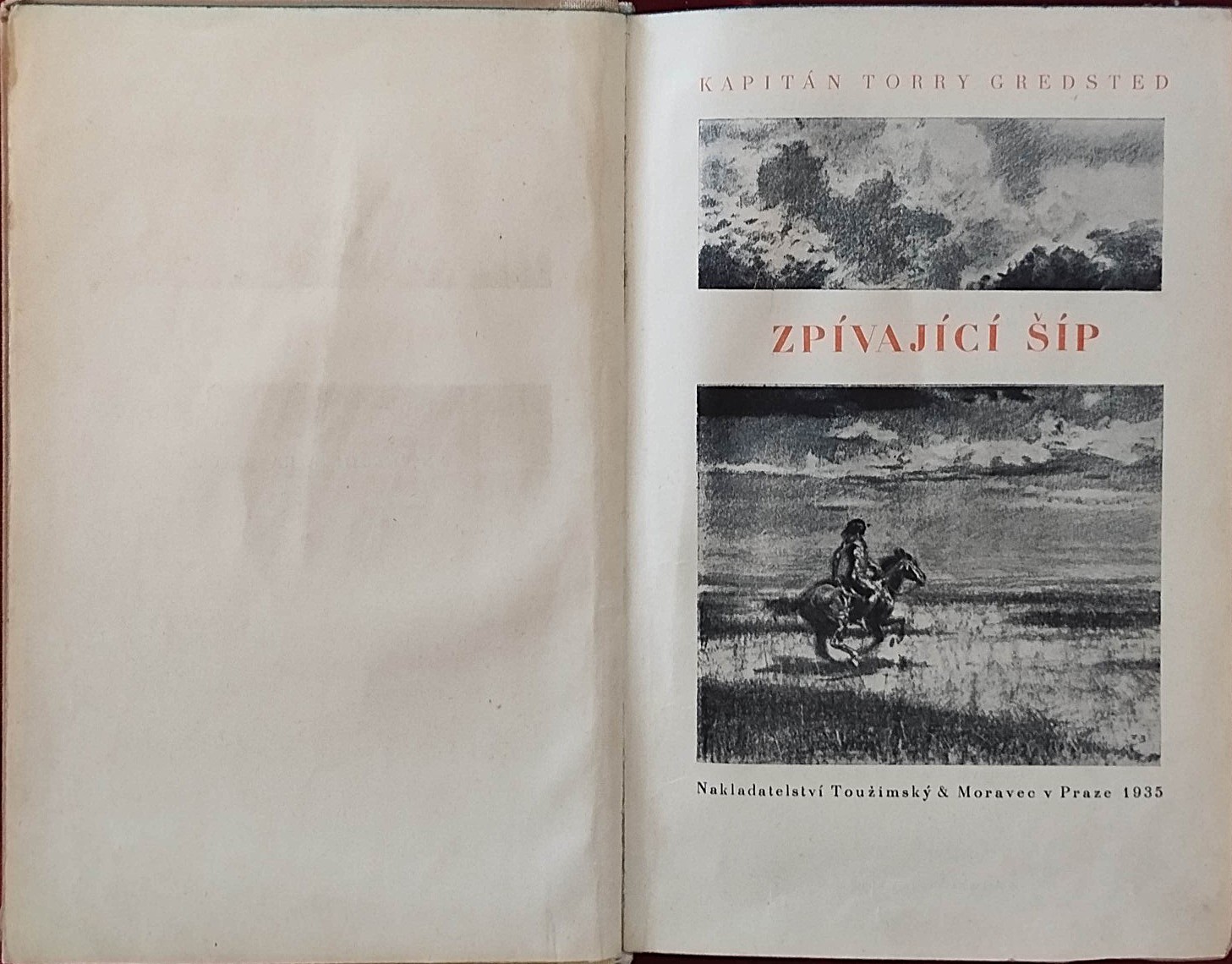 Dobrodružný román Zpívající šíp od dánského autora Torryho Gredsteda, vydaný v edici „S puškou a lassem“ nakladatelstvím Toužimský a Moravec v roce 1935. Počet stran 236. Rozměr: 13 x 18 cm. Stav viz foto.
